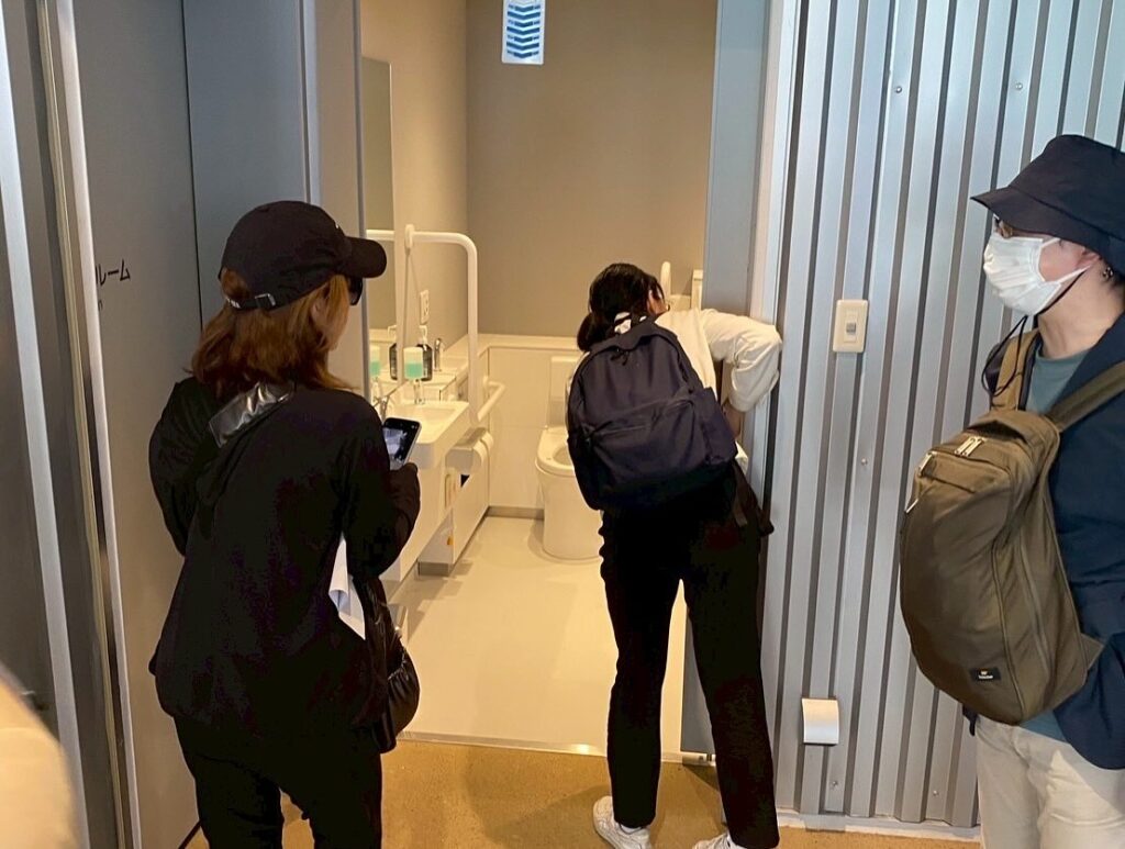 車椅子のお客様に、少しでも快適に万博を楽しんでいただけるよう、実際に歩きながら